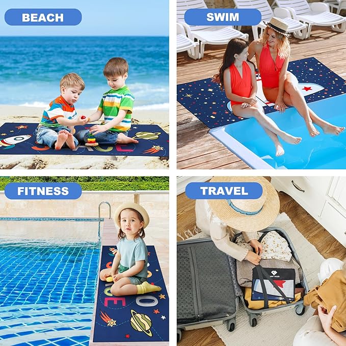 - 【Multi-Purpose Beach Towel 】The beach towel set has an unfolded size of 58"x28", which is ideal for beach recreation, swimming pools, spas, saunas, gyms, yoga, travel, camping, and picnics. It is also ideal as indoor swimming towels.