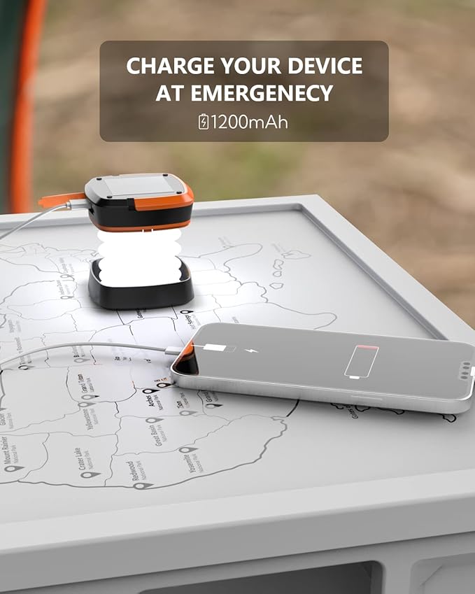 - Ready to be an emergency power source - Built-in updated 1200mAh lithium battery. The solar lantern can be a power source for your phones and other communication devices in case of emergency.