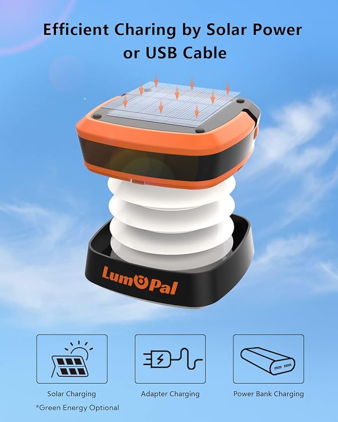 - Portable and Easy to Use - Weighing only 5.12oz, Lumopal solar lantern can be folded to a size of 3.03*3.15in and easily stored in a backpack or even in your pocket. You can also use the handle on the lantern to hang the light wherever you want. It is the perfect choice for camping or other outdoor activities.