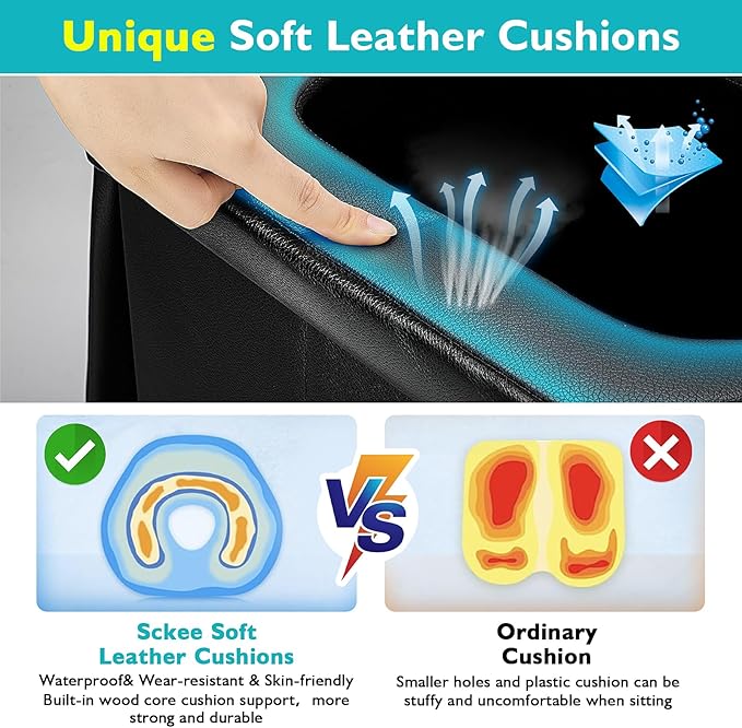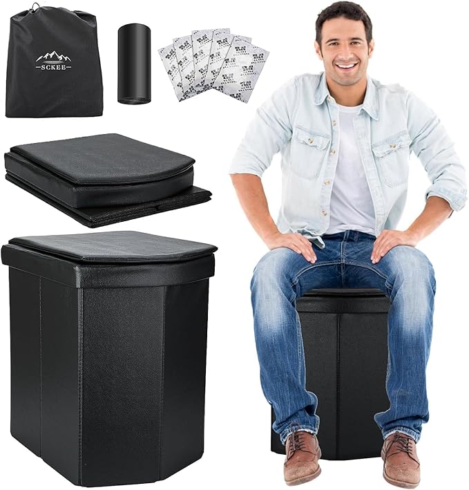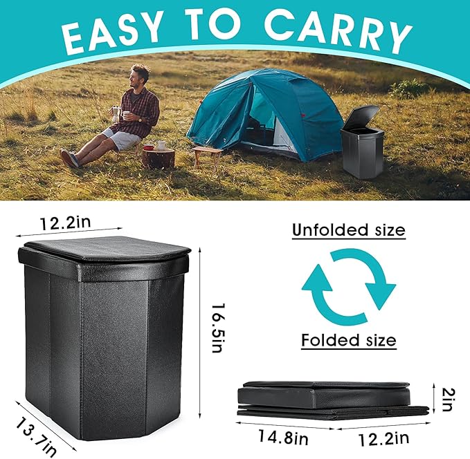 - 🏕️【Comfort and Sturdy】Our newly upgraded foldable toilet is made of sturdy density board and high-quality leather, which surprisingly sturdy and soft once set up. Just wipe with water to make it as good as new. Use it just like any other bucket-style portable camping toilet. If you're keen to avoid communal facilities or planning to go camping regularly, our camp toilet is a sensible option. It will make your entire use of the camp toilet more comfortable. It holds up to 440 lbs,suitable for the whole family!