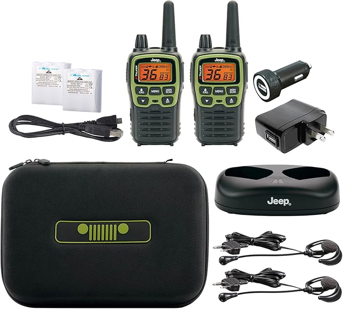 - Two Way Radios - These green, Jeep branded walkie talkies feature 36 FRS (Family Radio Service) channels, along with channel scan to check for activity. With clear communication & sound you’ll have crisp communication when out on off roading adventures.