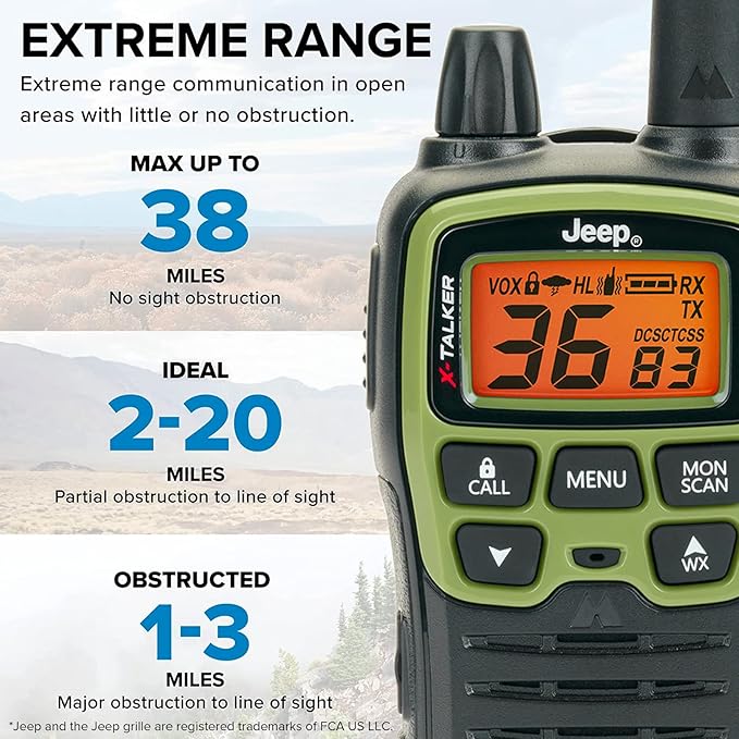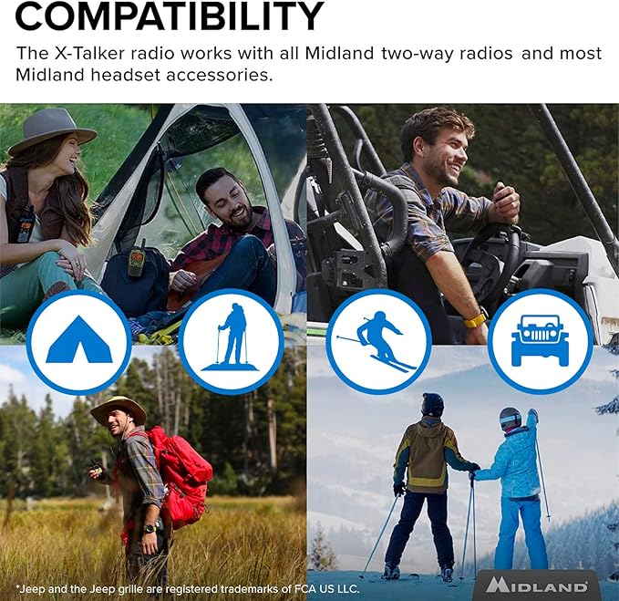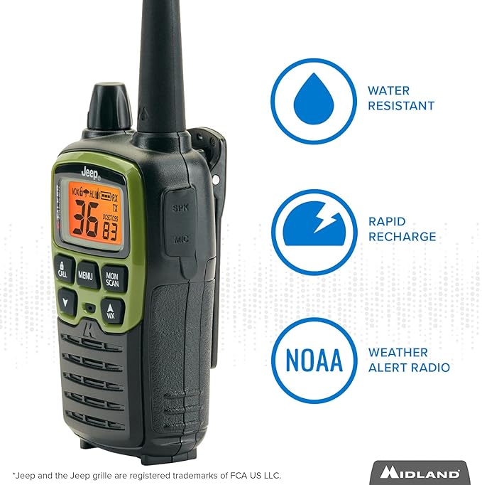 Midland - T77VP5J FRS Jeep® X-TALKER Extreme Dual Pack - 22 Channels, 121 Privacy Codes, Water Resistant - Clear Communication with Weather Alert - Jeep® Branded Carrying Case & Headset Included