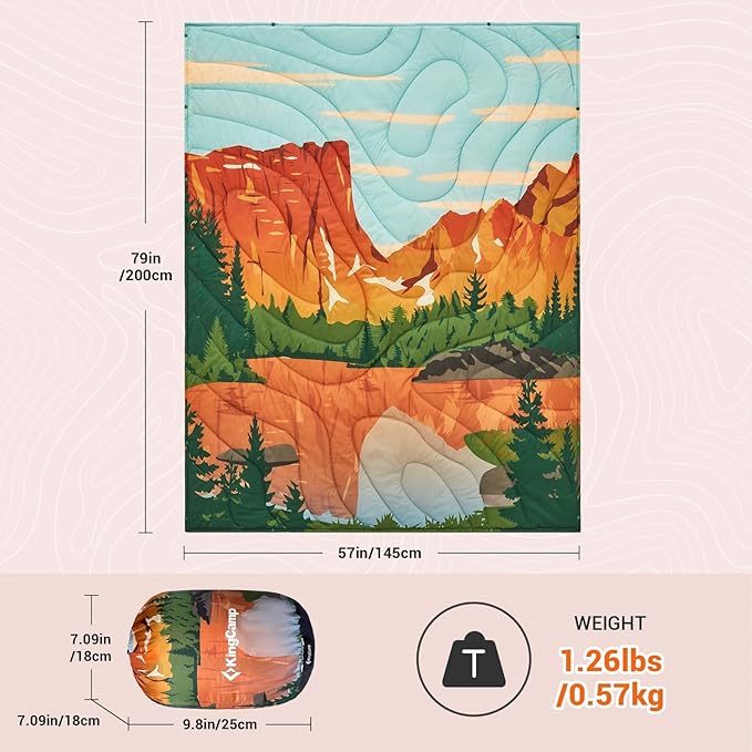 - 【LIGHTWEIGHT AND PORTABLE】: Weighing only 1.26lbs and featuring a lightweight design, this camping blanket is easy to pack and carry. Toss it in your backpack and bring it with you on your next adventure, whether it's a plane, train, or car ride.