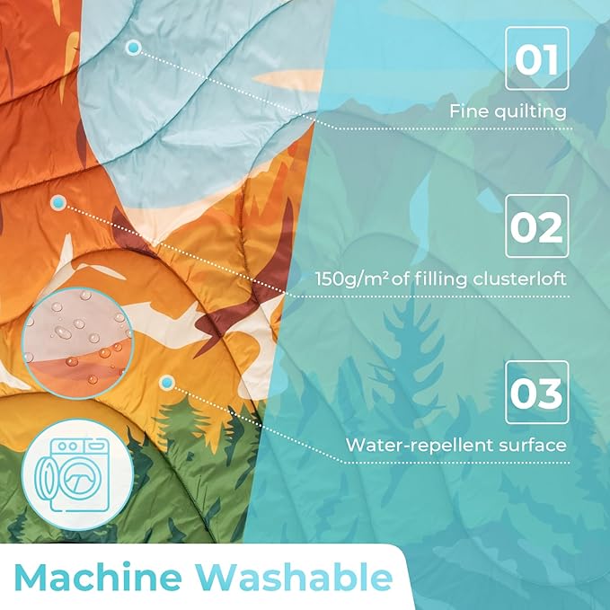 - 【EASY TO CLEAN】: Made with durable 20D polyester plain weave fabric, this camping blanket is easy to clean. Simply toss it in the washing machine and low tumble dry. It's that easy to keep it looking new for your next camping trip.