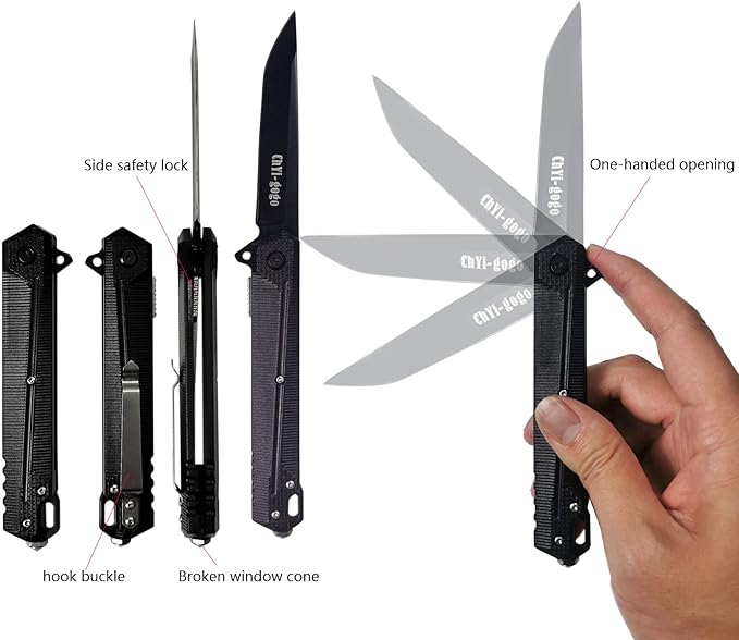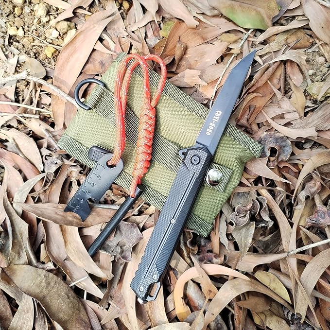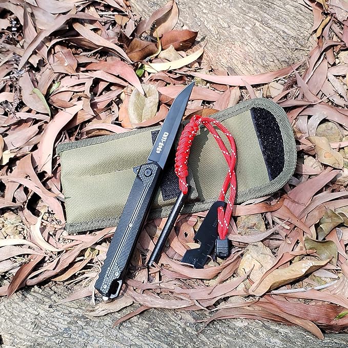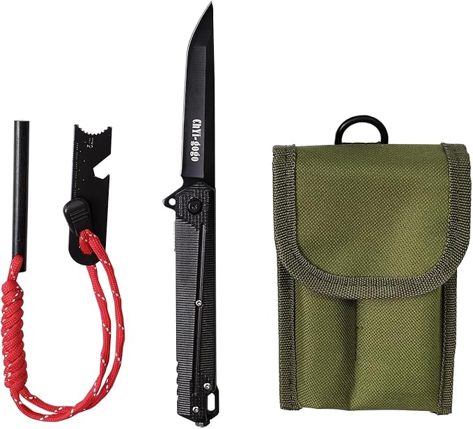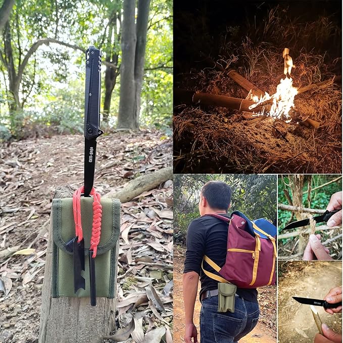 - Products include 1 set of flint fire rod,1 folding knife,1 small hanging bag.
