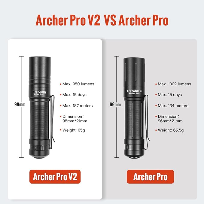 ThruNite Archer Pro V2 EDC Flashlight - 950 Lumens, USB-C Rechargeable, Tail Switch LED, Pocket-Sized for Camping, Outdoors & Emergencies - Neutral White, Black