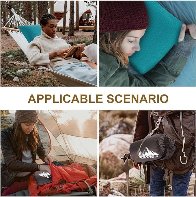 - 【Easy to Carry Travel Pillow】Our premium travel pillow is fully adaptable to all kinds of trips, like traveling, camping, fishing, backpacking, hiking, beach, festival, or other outdoor activities. Whether you're sleeping on a plane, a hammock, a beach, in a car, RV, or under a tent, hotel for a "Power Nap" in the office or on the couch, our travel pillow will give you a great night's sleep wherever you lay your head.