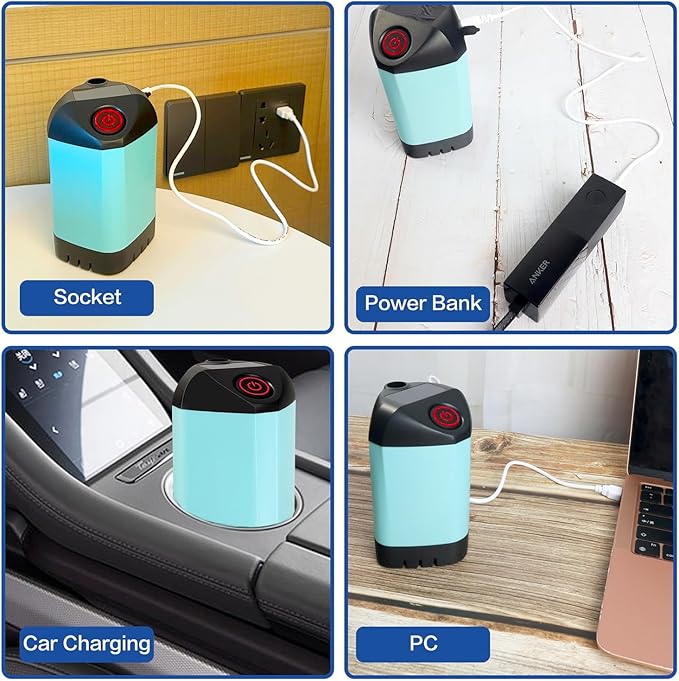 - ✅ Battery Level Indicator: The camping shower is very easy to use, hold the switch on battery pack for over 3 seconds to start the pump. When the power indicator shows green, the battery is fully charged;When the power indicator lights up blue, it means the battery is only 50 percent charged; When the power indicator is red, it means the battery is only 10% charged.