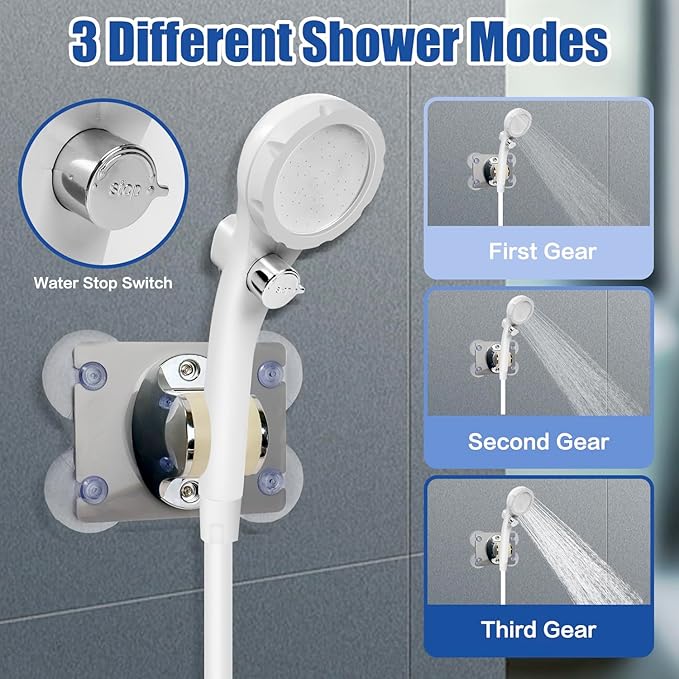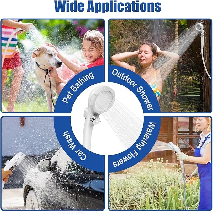 - ✅ Two Shower Head To Choose: The camp shower equipped a 3 selected modes shower head and water stop switch. You can easily switch different modes by rotating the handle on the shower head panel.The shower nozzle has two modes of water discharge, one is the press of water, the other handle up to lift the water can be continuous.