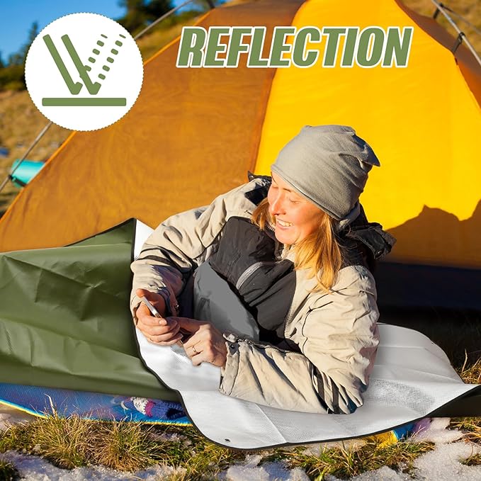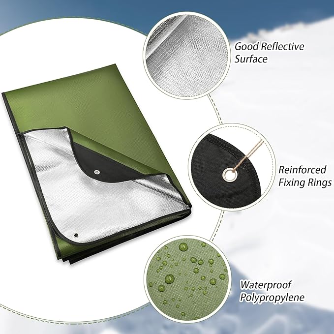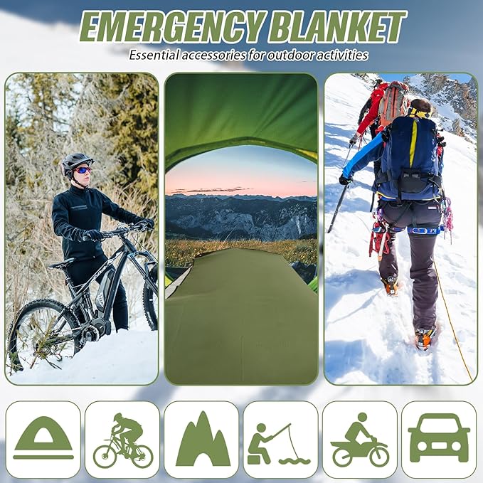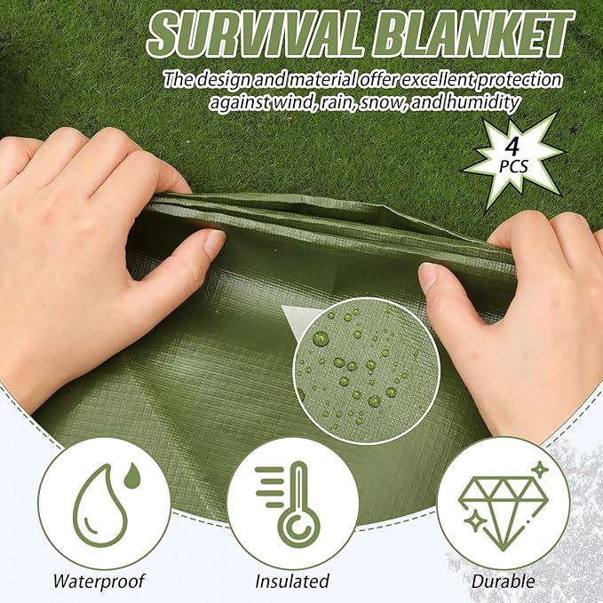 - Olive Green Survival Blanket: you will receive 4 pieces of olive green emergency blankets for survival, which have a silver reflective surface that can be applied to reflect heat, create a radiation barrier, or signal for help, and the other side is made of olive green polypropylene, forms a waterproof barrier that can be applied as a blanket, tarp or shelter