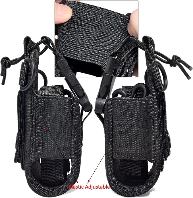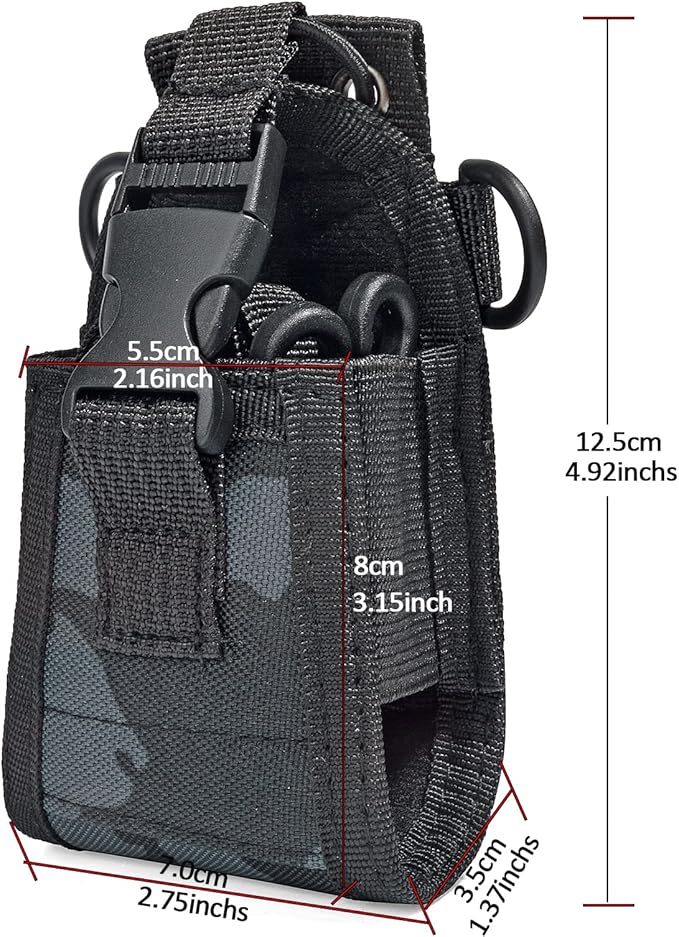 - Adjustable Radio Pouch can hold a 4" to 5-1/2" tall two-way radio, for the Motorola talkabout midland cobra baofeng kenwood Walkie Talkie radio.