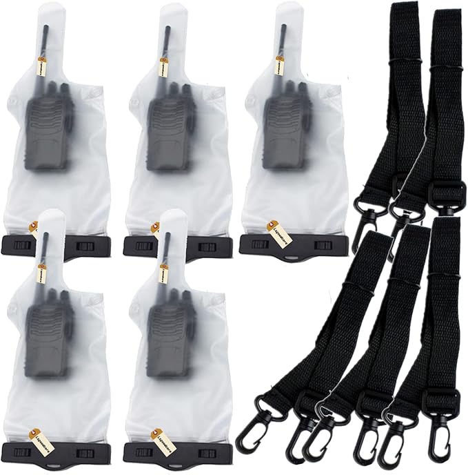 Lsgoodcare 5Pcs Portable Two Way Radio Waterproof Rainproof Bag Case Pouch Compatible with Motorola Kenwood Midland UV-3R UV-5R PX-888 Walkie Talkie Radio,5 Inch x 13.8 Inch, White
