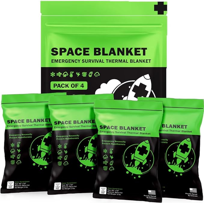 - FOUR PREMIUM MYLAR EMERGENCY BLANKETS- Durable and advanced aluminized dual-sided thermal blanket, Mylar blanket, emergency blankets or space blanket, field tested by Army veterans. The sheet blankets retains up to 90% of your body heat to keep you warm in the winter nights. These heater-like thermo blankets are water and weather proof, can be use as rain ponchos.