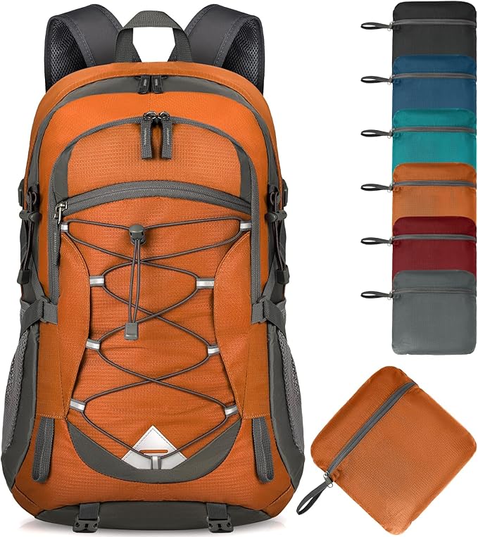 - 【Foldable & Comfortable】This lightweight trekking backpack only 1 pound, it can fold easily into its own pocket for storage and unfold when needed. Breathable mesh shoulder straps with plenty of foam padding help relieve pressure on the shoulders. The chest buckle is designed as a survival whistle for quick and easy access in an emergency. The chest strap buckle perfectly distributes the weight of the packable hiking backpack and keeps it stable and centered.