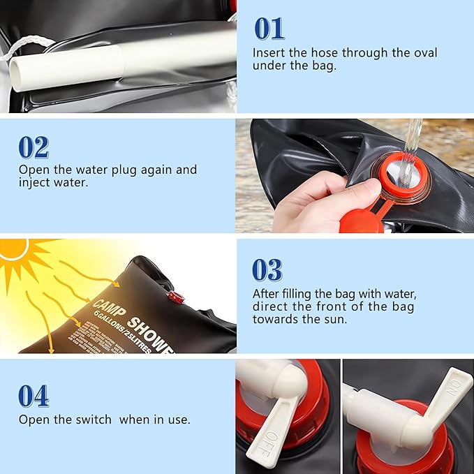 - 【6 Gallons Large Capacities】JIURUN Portable shower bags are available in 6-gallon/25L capacities, enough water for multiple showers for an enjoyable showering experience.