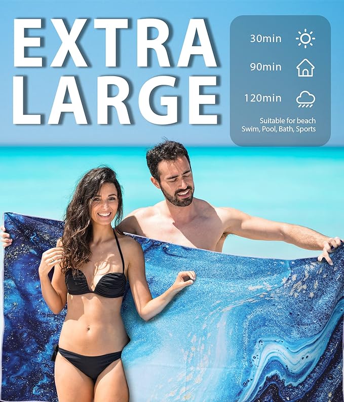 - ☀️[ Microfiber Lightweight ] High quality microfiber that absorbs water much faster than ordinary fabric! Eco-friendly, no faded and no smell. You can easily take it portable to avoid wet and cold on the beach. Perfect size for adults or kids.