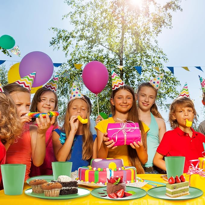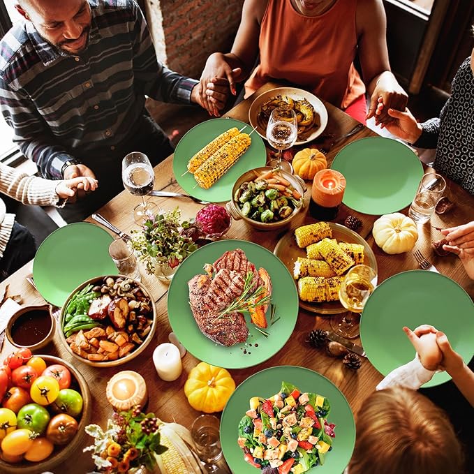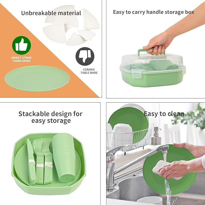 Wheat Straw Dinnerware Sets for 6, 31 Piece Unbreakable Outdoor Cutlery Set. Reusable plates and cups set for camping, picnics, RV trips, and party grills. (Green)