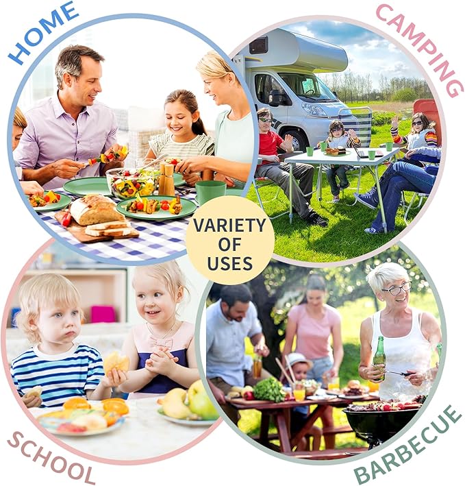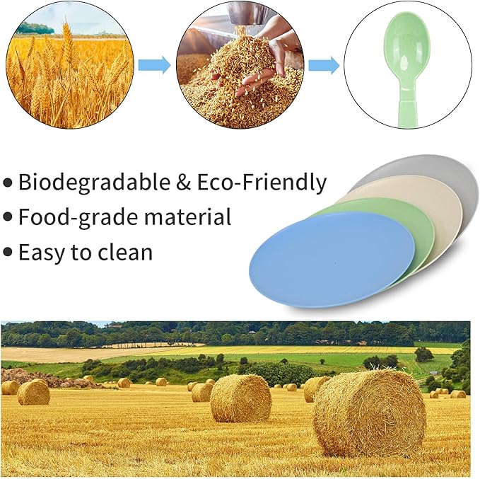 - 🌾【Reliable Material】Dinnerware set made from Wheat Straw and PP plastic. The material is BPA-free, non-toxic, odourless and safe.Replacing foam and plastic cutlery as a stylish, healthy and sustainable alternative.
