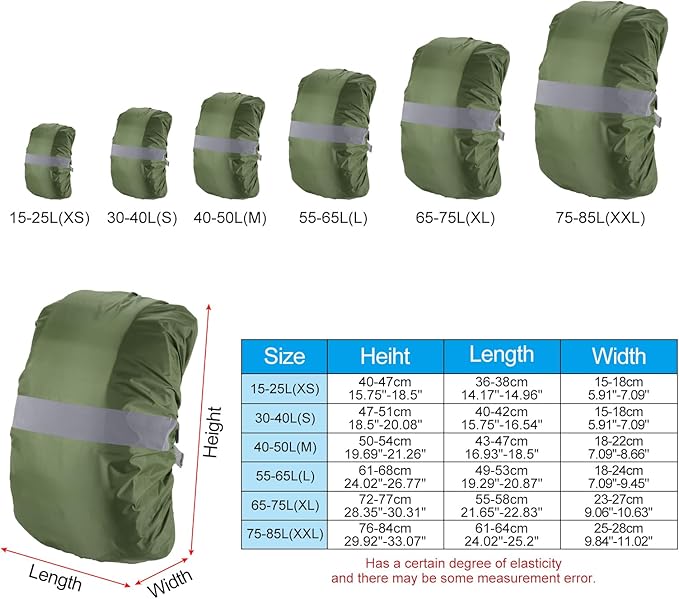 - Instruction: This rain cover fits most backpacks from 15 to 25 liters, ensuring that your gear stays dry in any weather condition.