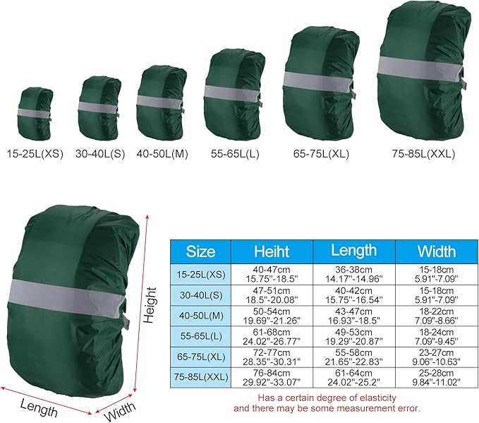 - Instruction: This rain cover fits most backpacks from 15 to 25 liters, ensuring that your gear stays dry in any weather condition.