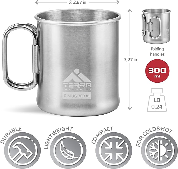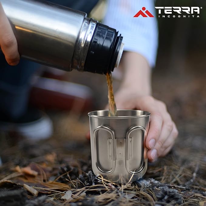 - ✮ Convenient and Compact✮: With its folding handle, this portable hiking mug is easy to carry and takes up minimal space in your backpack or travel bag. You can enjoy your favorite hot or cold beverage wherever you go!