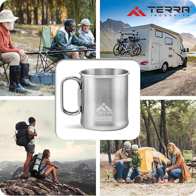 - ✮ Versatile Design✮: This stainless steel camping mug with a single wall and folding handle is perfect for camping, hiking, backpacking, fishing, hunting, and other outdoor activities. It's a must-have for any adventure seeker!