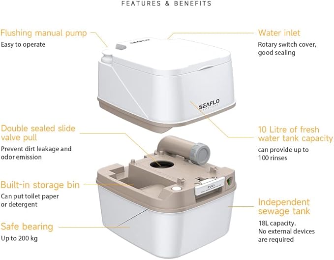 SEAFLO Portable Toilet for RV, Boat, and Camping (4.8 Gallon - Premium Ver.)