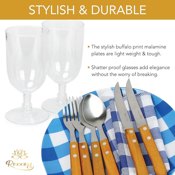 - Picnic basket with blanket is perfect for enjoying a picnic with 4 persons offers high-quality accessories with 4* Glasses, 4* Plates, 4* Forks/ knives/ Spoons, 4* Napkins Clothes, 2* Pepper Shakers, 1* Chopping Board, 1* Cheese knife, 1* Bottle-Opener, 1* Blanket