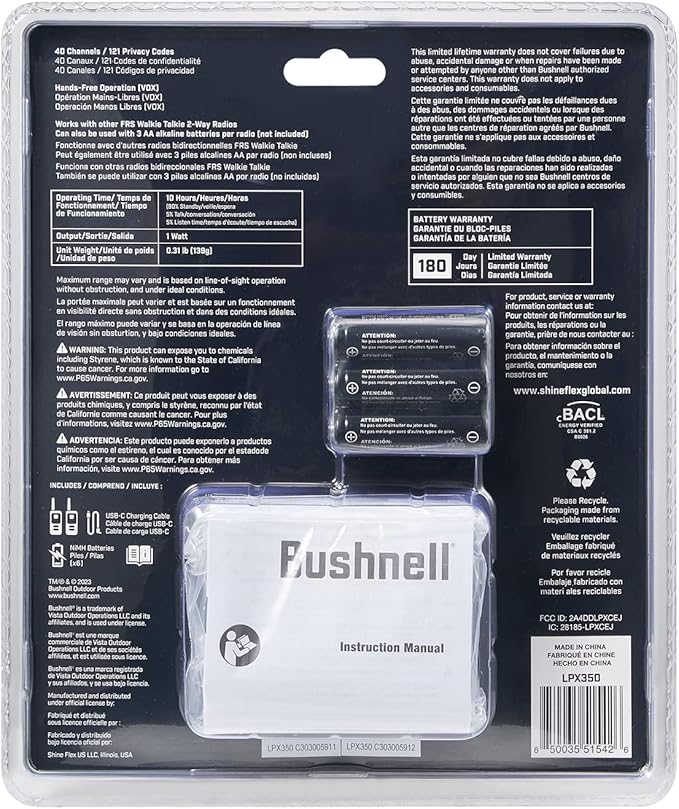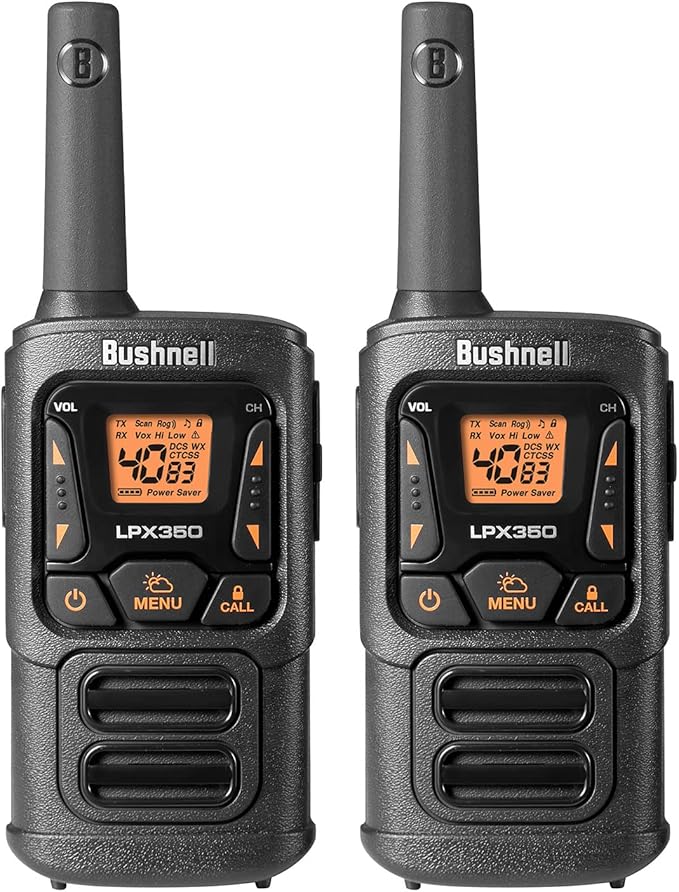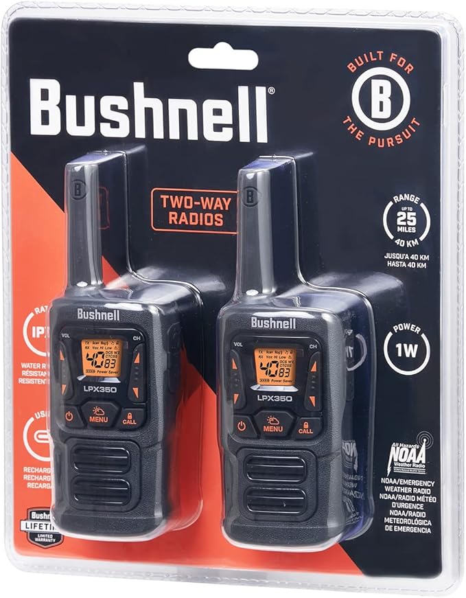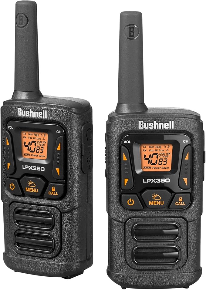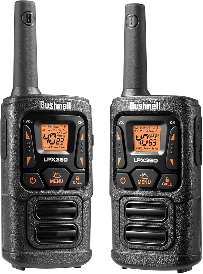 New Bushnell LPX350 Walkie Talkie Radio - Reliable Quality, Rugged Design, 1W Power for 25 Miles of Range, Two Way Radios Equipped for Wherever Life Takes You (2 Pack)