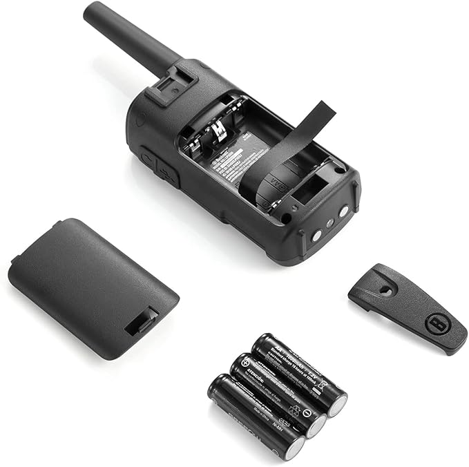 - WHAT'S IN THE BOX? 2x LPX550 Walkie Talkie Two Way Radios, 6x 1000mAH NiMH Rechargeable Batteries, 2x Belt Clips, 1x USB-C Charging Dock, User Guide. NOTE: Radios can also be used with AA alkaline batteries [not included].