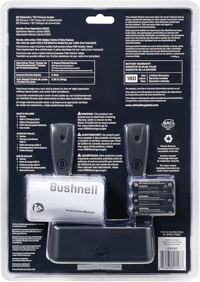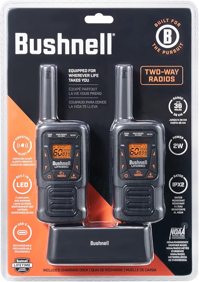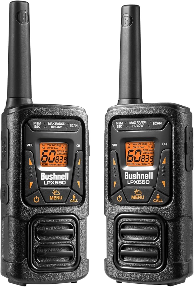 New Bushnell LPX550 Walkie Talkie Radio - Reliable Quality, Rugged Design, 2W Power for 36 Miles of Range, Two Way Radios Equipped for Wherever Life Takes You (2 Pack)