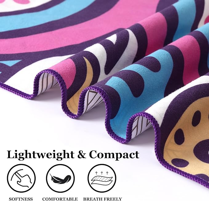 Genovega Oversized Microfiber Compact Sandproof Pool Beach Towel Blanket - 72"x36" Funny Quick Fast Dry Sand Free Swimming Pool Camping Picnic Towels for Women Men Adult Gift Purple Boho