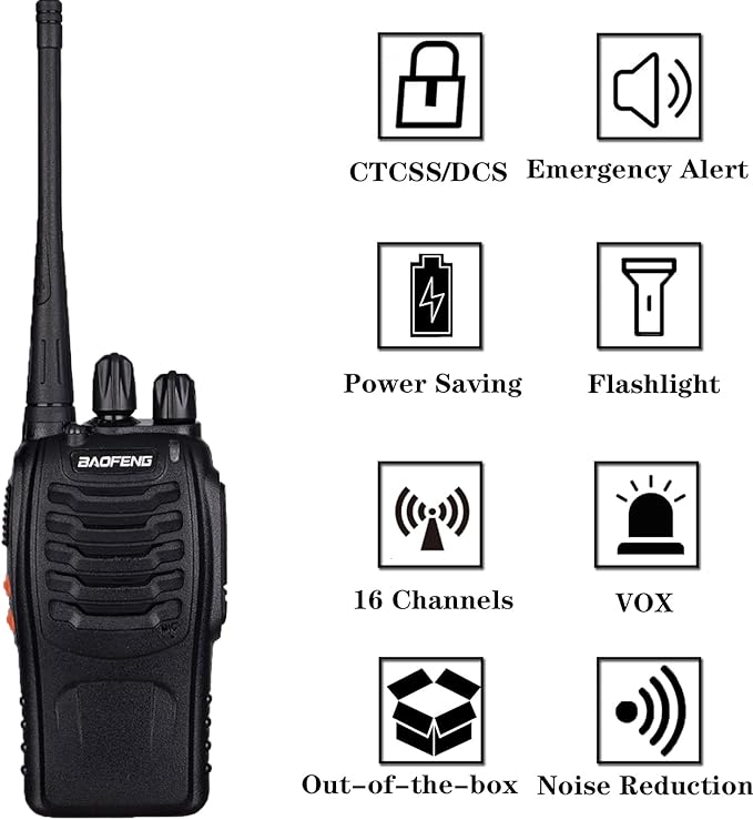 - Professional Multi-Function Walkie Talkie: The walkie talkies has 16 preset channels, rotary knob for quick channel selection, 50 CTCSS /105 CDCSS, VOX,scanning, low battery alarm,flashlight. The baofeng 888s is FCC certified, FCC ID: 2AJGM-BF888S.