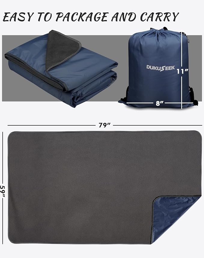 DUKUSEEK Large Waterproof Stadium Blanket for Cold Weather, Soft Warm Fleece Camping Blanket Windproof for Outdoor Sporting Events, Football Games,Navy Blue,79"x 59"