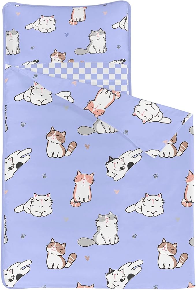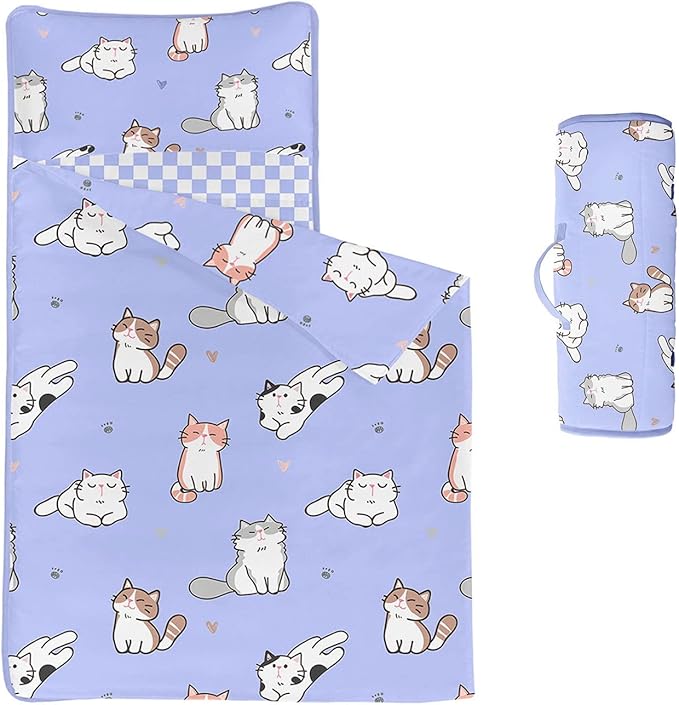 - Portable - a sleeping mat, blanket and pillow. Rolled up easily with hook and loop fastener and convenient carry handle. Perfect for preschool, daycare and sleepovers.