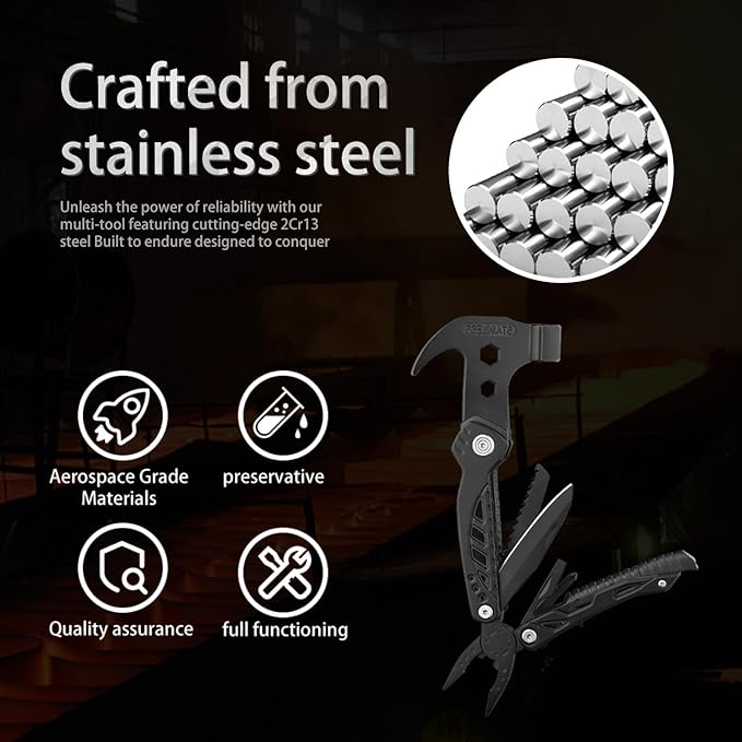- 【Durable and Reliable】Constructed from high-quality stainless steel, this multifunctional hammer is built to last. It features a sturdy handle that provides a comfortable grip and enhances durability. With its rugged design and corrosion-resistant properties, you can rely on this hammer to withstand tough tasks.