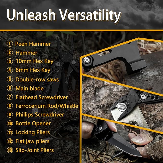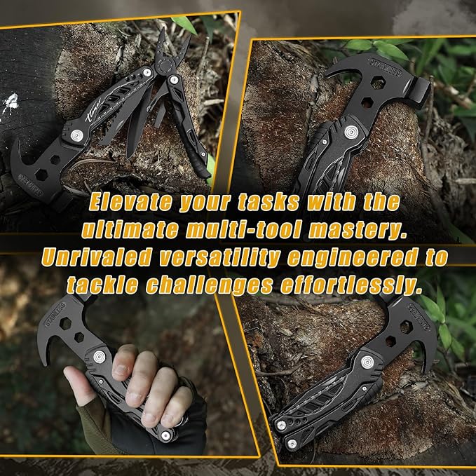 - 【Multifunctional Hammer】This versatile hammer offers 13 different functions to meet various needs. It serves as a hammer, pliers, wire cutter, screwdriver, knife, saw, ruler, bottle opener, can opener, hex wrench, file, fish scaler, and hook remover. It's the ultimate all-in-one tool for your toolkit.