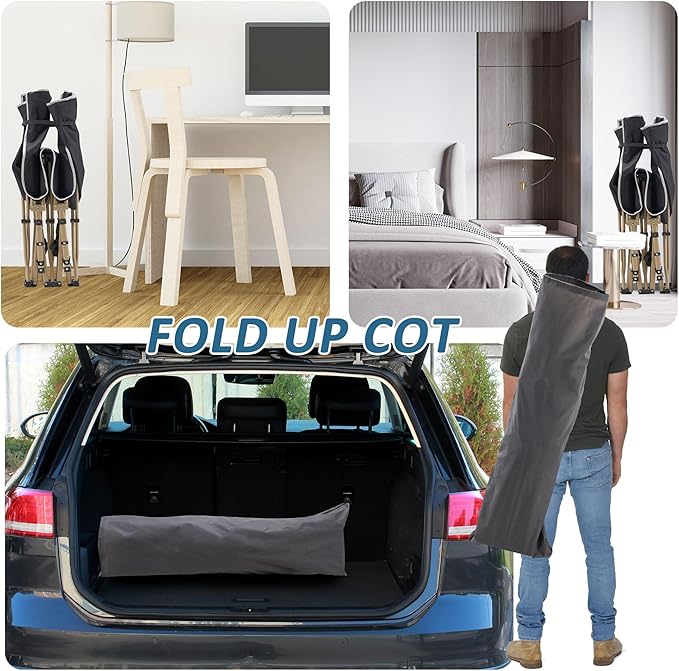 - Wide Application: The foldable cot can be easily folded or opened in seconds, the total weight of folding cot is 16.3 lbs, comes with a carry bag for easy carrying. Ideal travel cot for camping, travel, office, patio, tent.