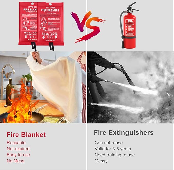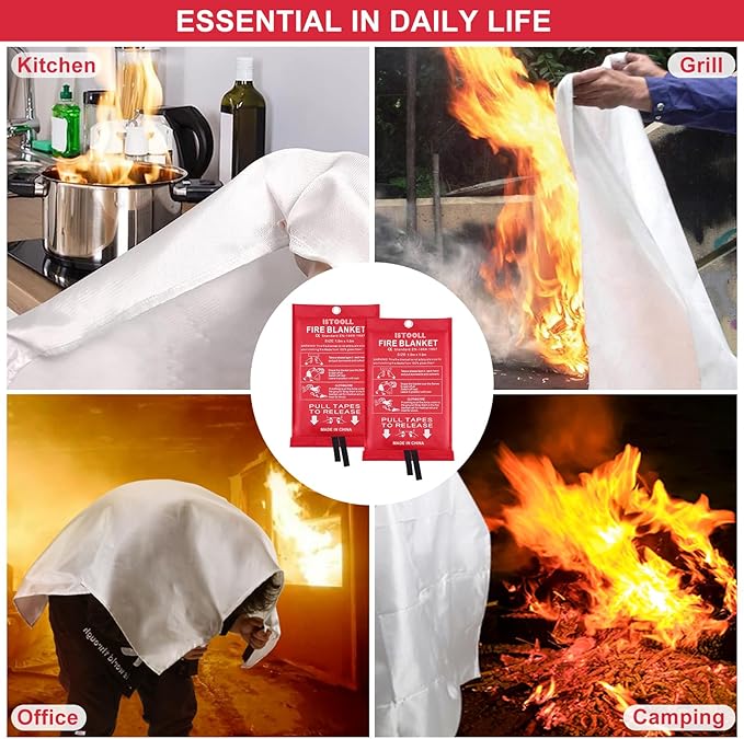 - 【A Essential Survival Fire Blanket】Emergency survival fire blanket is ideal for home, kitchen, office,warehouse,shop,hotel,entertainment place,gas station,restaurant,stove,fireplace,house,car,camping,grill,welding etc. .This very useful safety tool is needed in every place where a fire may occur.