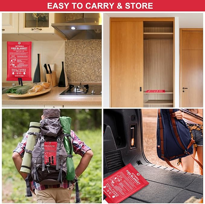 - 【100% Satisfactory Guarantee】Fire blanket size is 39×39 inches, compact waterproof storge bag with large hanging hole. Package: 2 Packs of fire blankets emergency.As an emergency survival personal protection fire blanket, it is vital to every home's safety, but we hope you never have to use it.If you have any questions when using it, please feel free to contact us, we will reply within 24 hours.