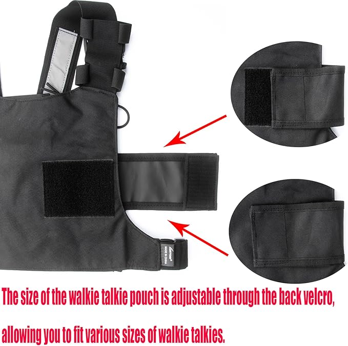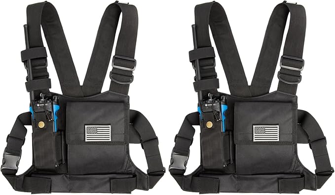 LUITON Radio Chest Harness with Reflective Strips Shoulder Holster Radio Vest Holder Two Way Radio Vest Rig Walkie Talkie Case with Front Pack Pouch for Motorola/Midland/Baofeng/Retevis(2 Pack)