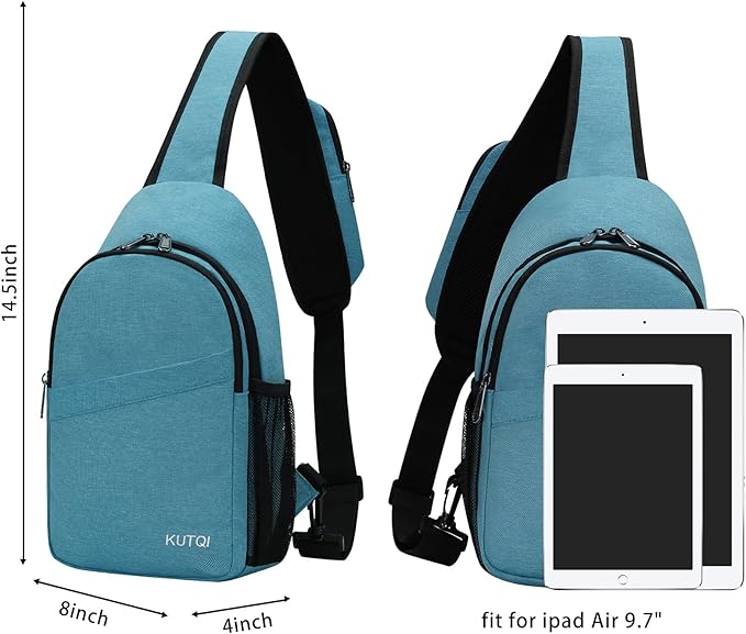 - Keep Everything Organized: Dimensions:14.5x8x4 inches / 37x20x10 cm.The sling bag contains 5 main pockets, a front pocket,two side pockets and a back pocket.The main pocket can put iPad,books,power bank,etc.Side pockets hold water glasses and umbrella.There are also multiple small pockets for your passport, cards, pens and more.Allows you to arrange your items in an orderly manner, making travel more convenient.