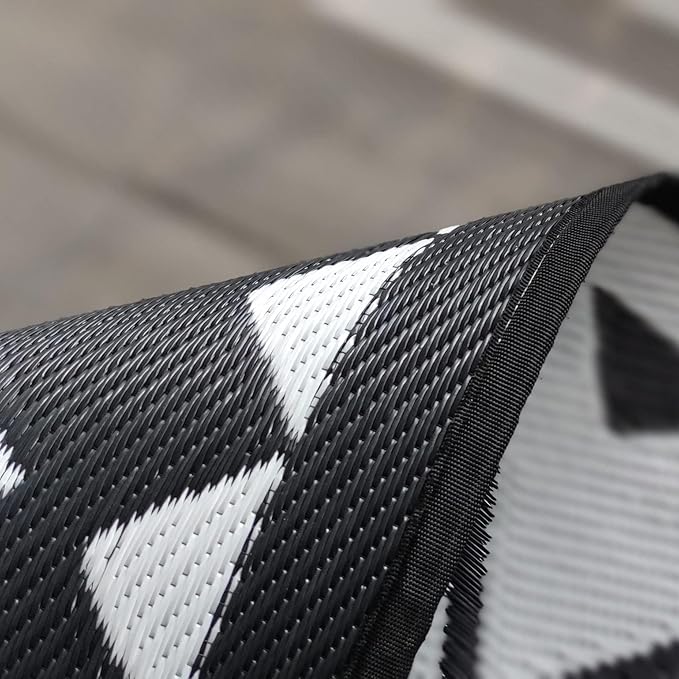 - REVERSIBLE: Hemming process to prevent outdoor rugs from falling apart.Fixed rings design at the four corners to prevent movement