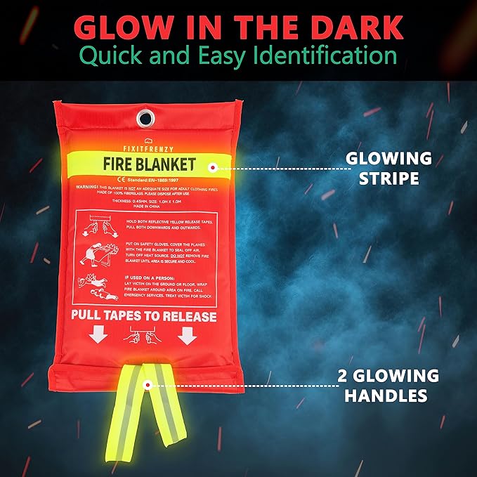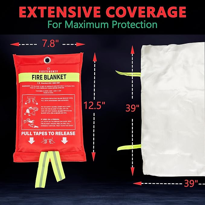 - ✅ HIGHLY EFFECTIVE: Our emergency fire blanket can quickly smother any small fire that breaks out in your home, office, car or backyard, preventing a disaster. A MUST-HAVE for any kitchen, grill area, school, business, restaurant, warehouse, garage, etc. CE Safety Standards EN 1896:1997. DOES NOT EXPIRE!