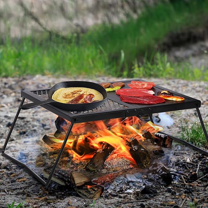REDCAMP Folding Campfire Grill Heavy Duty Steel Grate, Portable Camp Fire Cooking Racks and Griddle for Outdoor Versatile Campfire Cooking