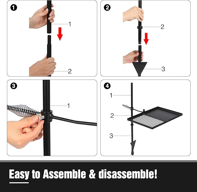 - Easy to Install: No tools are required to assemble this heavy-duty swivel campfire grill. Only 4 simple steps are required, and the installation is fast in less than 2 minutes.
