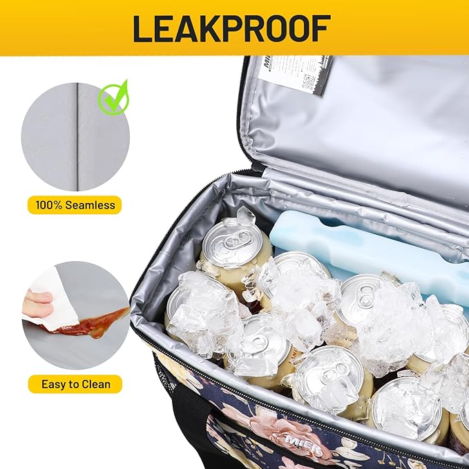 - Insulated and Waterproof Lunch Cooler ---- Heat-welded seams prevent flexible liner leaks; Easy-to-clean permanent, flexible, soft PEVA liner and food safety