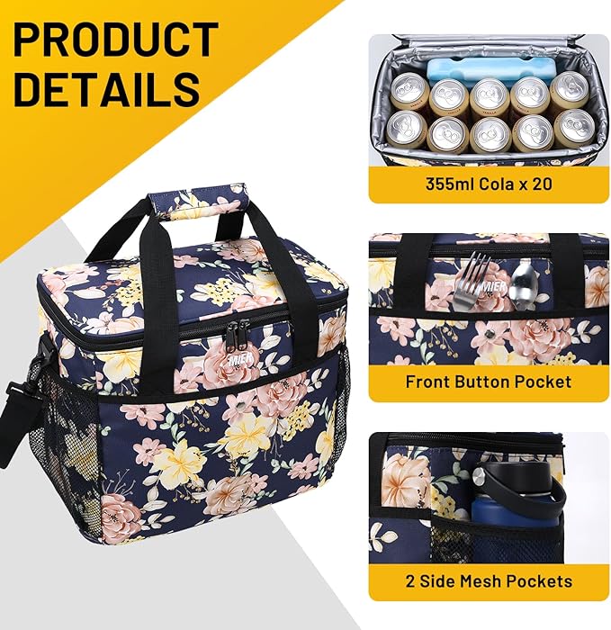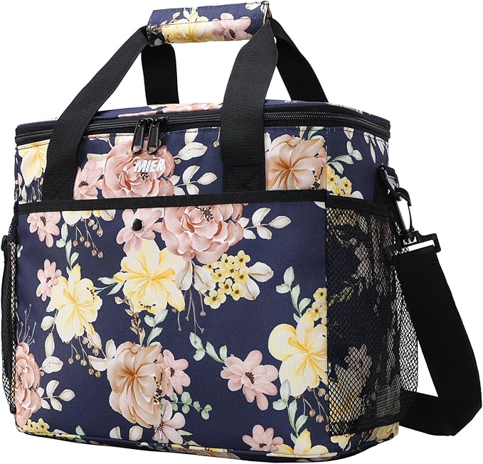 MIER 18L Large Soft Cooler Insulated Picnic Bag for Grocery, Camping, Car, Navy with Flower