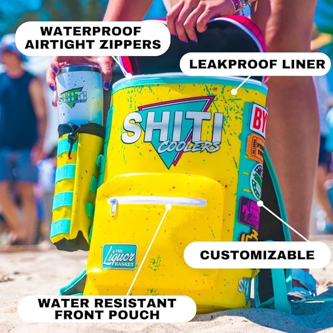 SHITI Coolers Soft Side Backpack Cooler for Partying at The Beach, Pool, Tailgate, or Camping - Portable Backsaver - Insulated & Leak Proof - High Performance Yet Extremely Cool (Liquor Basket)