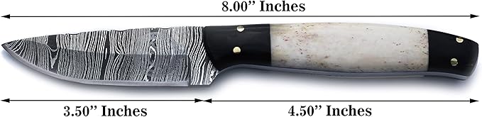- 🗡:KNIFE DIMENSIONS: It is best as a Hunting, Survival, Camping, Skinning and Tracking Knife a complete Package of an Outdoor Adventures. 8 inch Total Length, 3.5 inches Blade and 4.5 inches Handle.